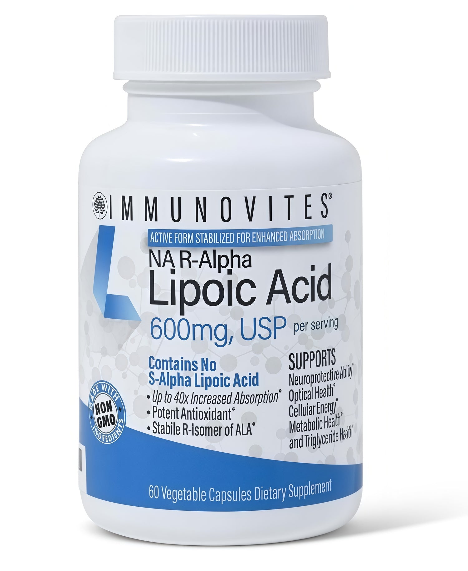 The stabilized form of R-ALA has shown results of up to 40x more absorption*. Since the FDA has not truly standardized Dietary Supplement labeling, you need to be able to decipher the infinite number of product labels out there claiming to be what you are looking for while not delivering. At IMMUNOVITES, our sincere desire is to make it possible for you to find what you need in a way that makes sense and helps guide you to a better product that will help you on your journey.